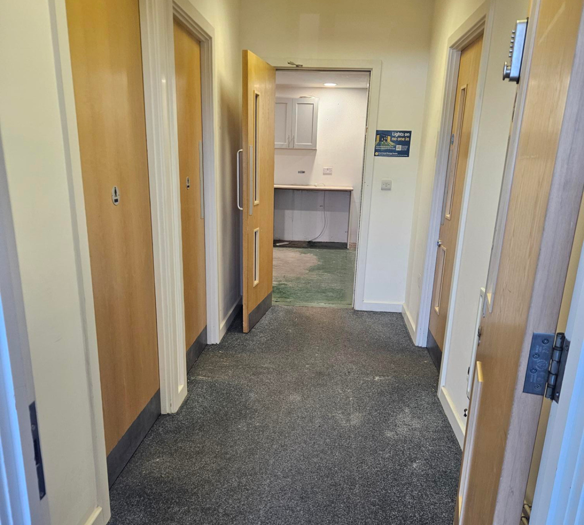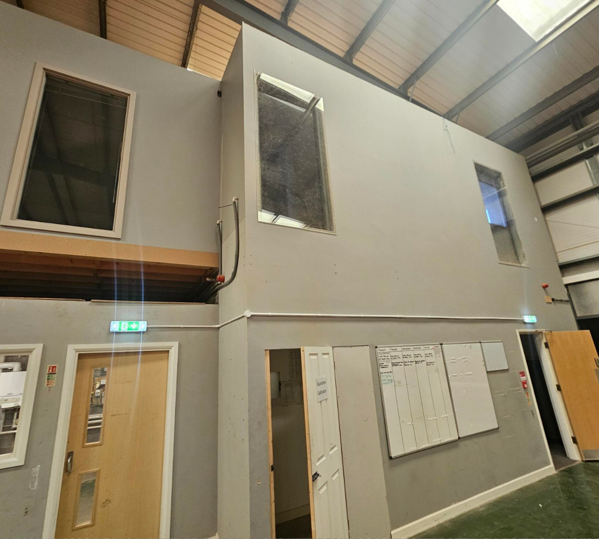 Flooring: Installation of new carpets to office areas, application of safety flooring where required, and cleaning and restoration of the warehouse floor to improve durability and presentation.